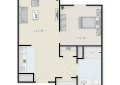 Whether you’re looking for a private studio or a companion suite, each Memory Care apartment is thoughtfully designed for convenience, safety and comfort. Along with expert care and support available 24/7, all residents enjoy their homelike apartments as well as a host of exciting community amenities! Browse our featured Memory Care floor plans below, and contact us when you’re ready to schedule a tour!